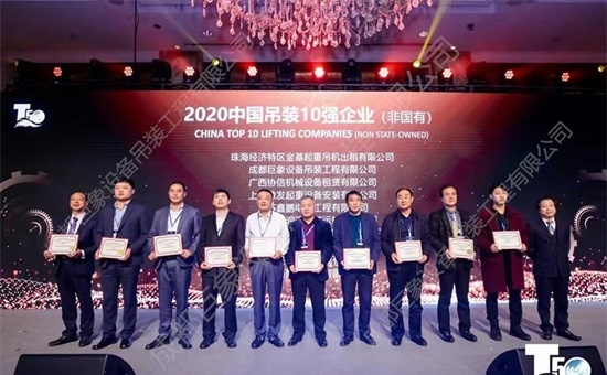 被中國吊裝協(xié)會授予成都巨象吊裝公司(民營)全國十強(qiáng)
